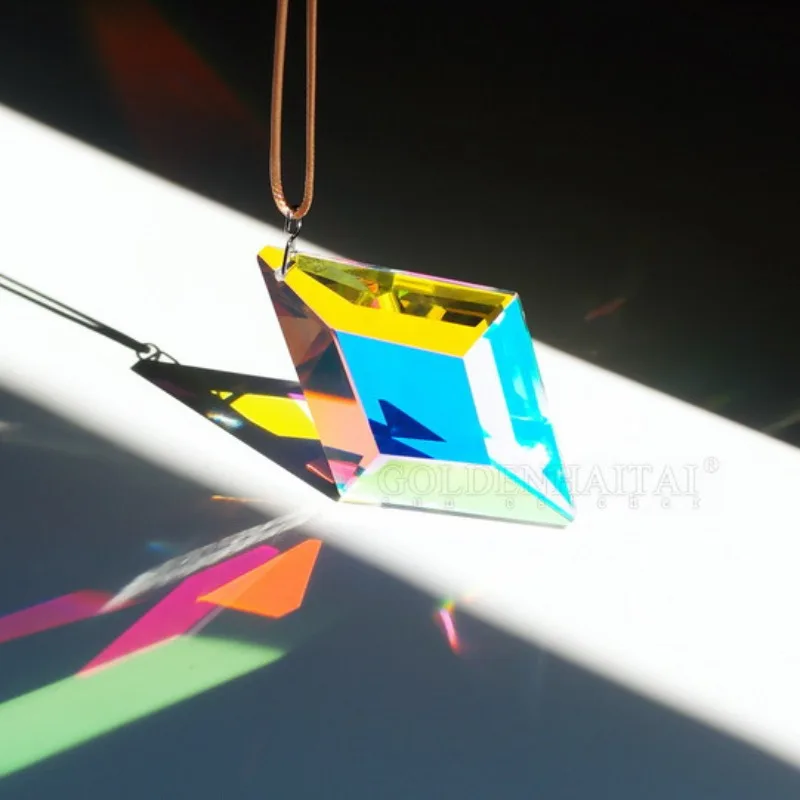 The high-quality crystal refracts light, creating beautiful rainbow reflections.